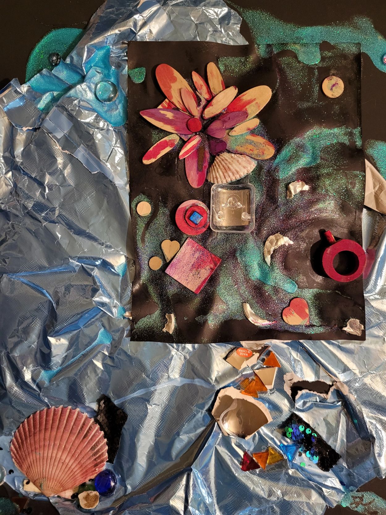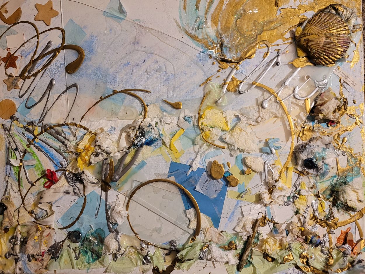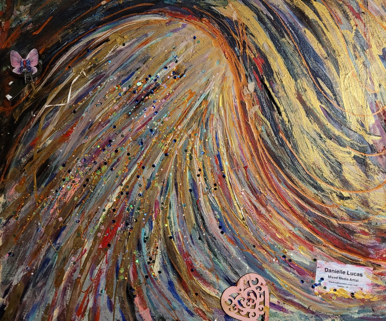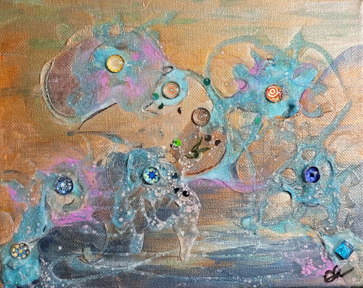 Acrylic, Watercolor, Metallic Gel Pens, Pastels on Paper